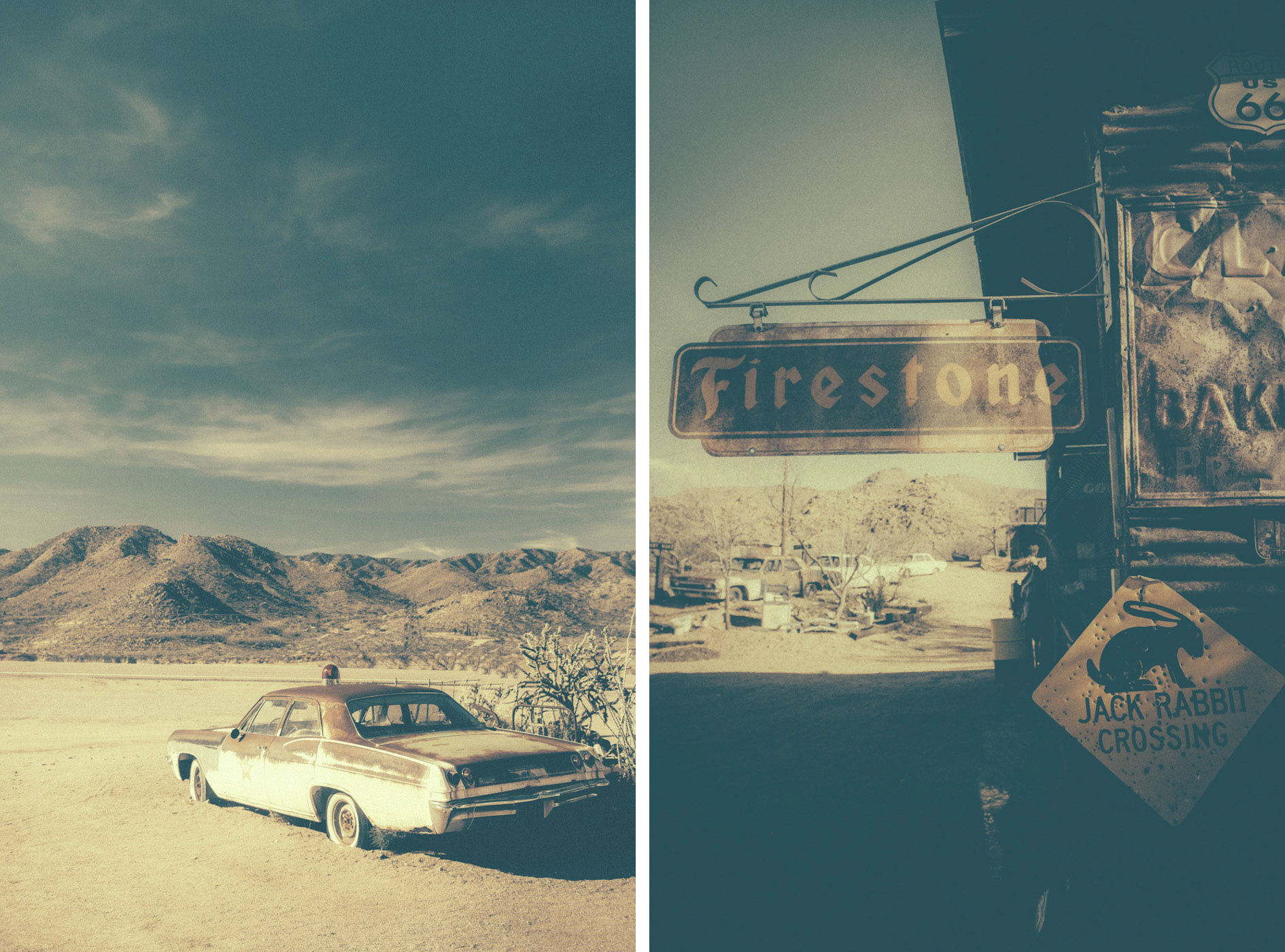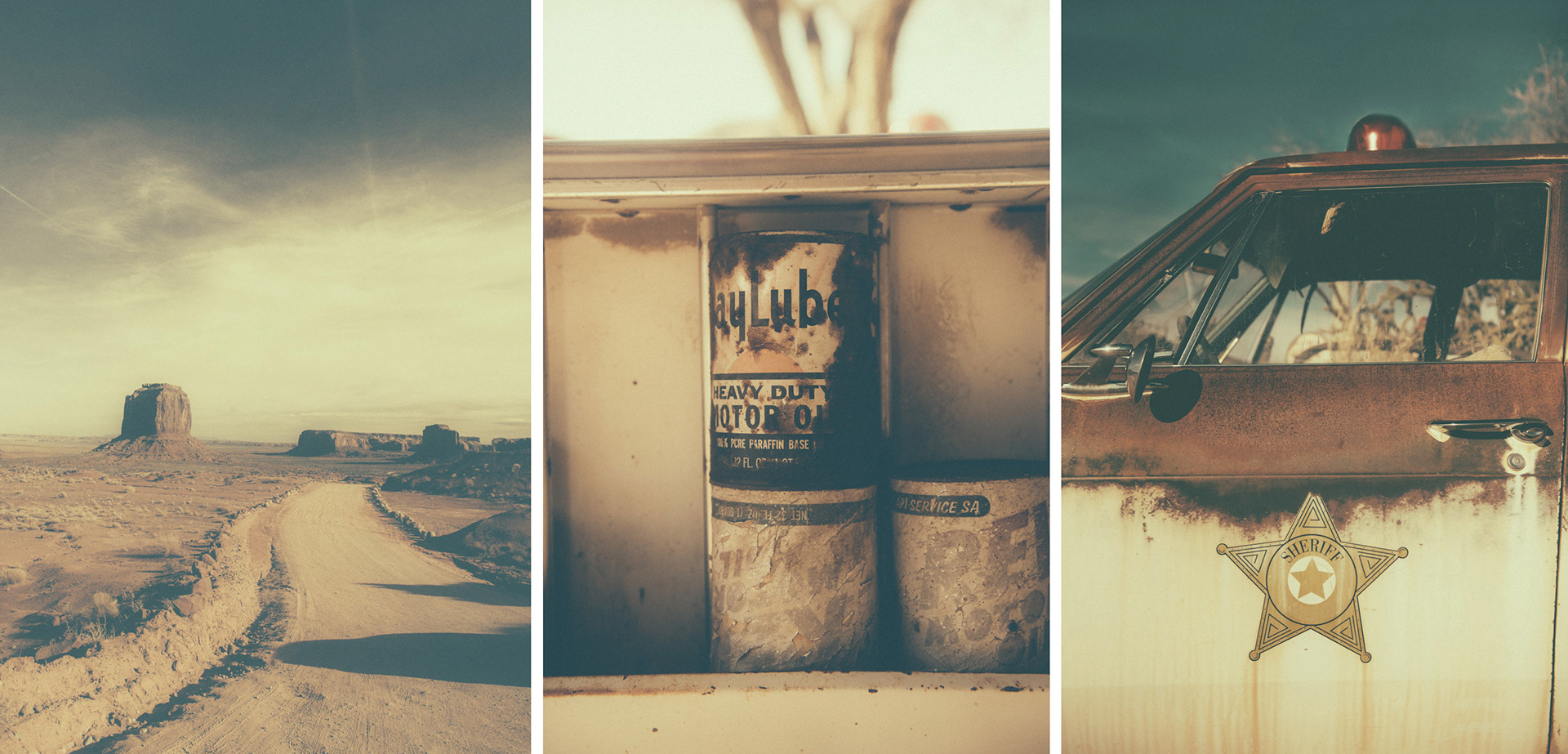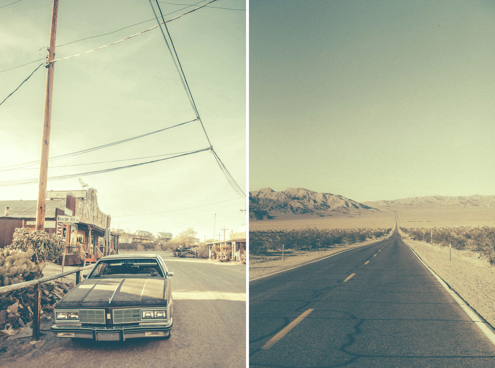 This body of work explores the American desert as a space of absence, waiting, and quiet tension. Vast landscapes stretch beyond the frame, while old motels, empty roads, and fading architectures appear as silent witnesses of lives that once passed through. There are no people in these images. Human presence is deliberately absent, yet constantly felt — through traces, structures, and atmospheres shaped by time. The desert becomes a mental landscape, a place where solitude, longing, and stillness coexist. I apply a deliberately aged, dusty visual treatment to my photographs. This weathered aesthetic echoes the erosion of both land and memory, blurring the line between past and present. Faded colors, soft contrasts, and textured surfaces reinforce the feeling of suspension, as if these places exist outside of time.