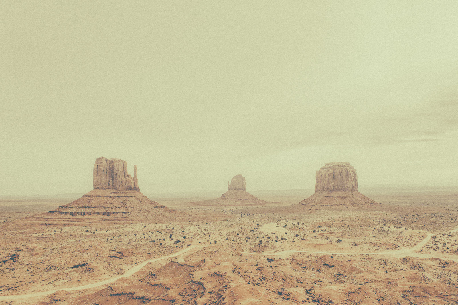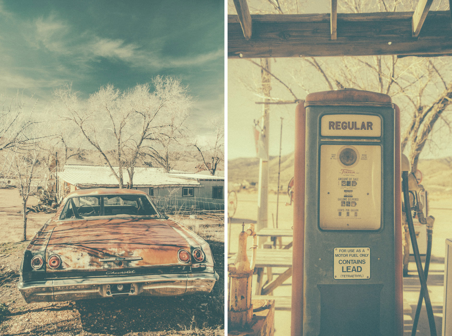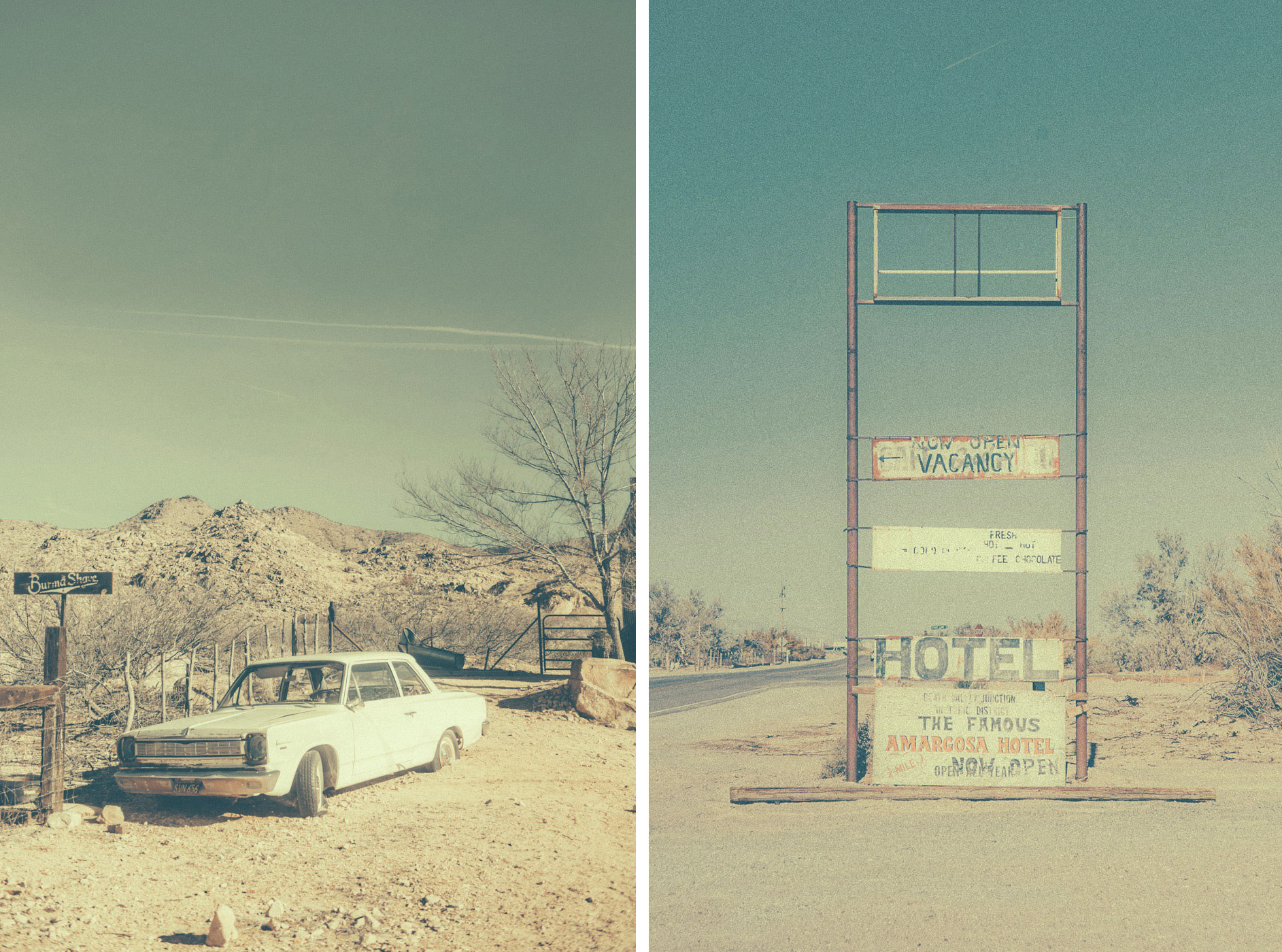 This body of work explores the American desert as a space of absence, waiting, and quiet tension. Vast landscapes stretch beyond the frame, while old motels, empty roads, and fading architectures appear as silent witnesses of lives that once passed through. There are no people in these images. Human presence is deliberately absent, yet constantly felt — through traces, structures, and atmospheres shaped by time. The desert becomes a mental landscape, a place where solitude, longing, and stillness coexist. I apply a deliberately aged, dusty visual treatment to my photographs. This weathered aesthetic echoes the erosion of both land and memory, blurring the line between past and present. Faded colors, soft contrasts, and textured surfaces reinforce the feeling of suspension, as if these places exist outside of time.